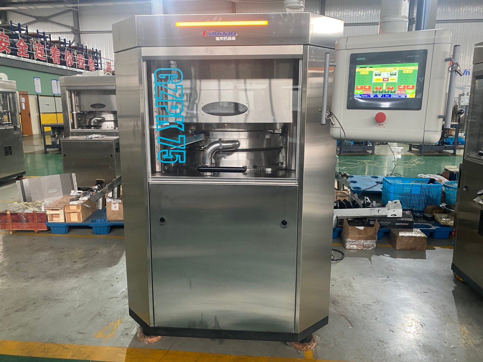 The GZPK-51 is a high-speed, double-sided rotary tablet press featuring 51 stations that offer exceptional productivity and precision. Designed for continuous large-scale production, it can achieve excellent weight uniformity, high hardness consistency, and smooth tablet surfaces.