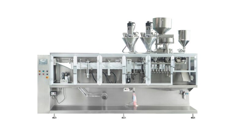Automatic Horizontal Doypack Double Dual Sachet Pack Powder Liquid Paste Granule Filling Premade Pouch Twin Sachet Packaging Packing Machine